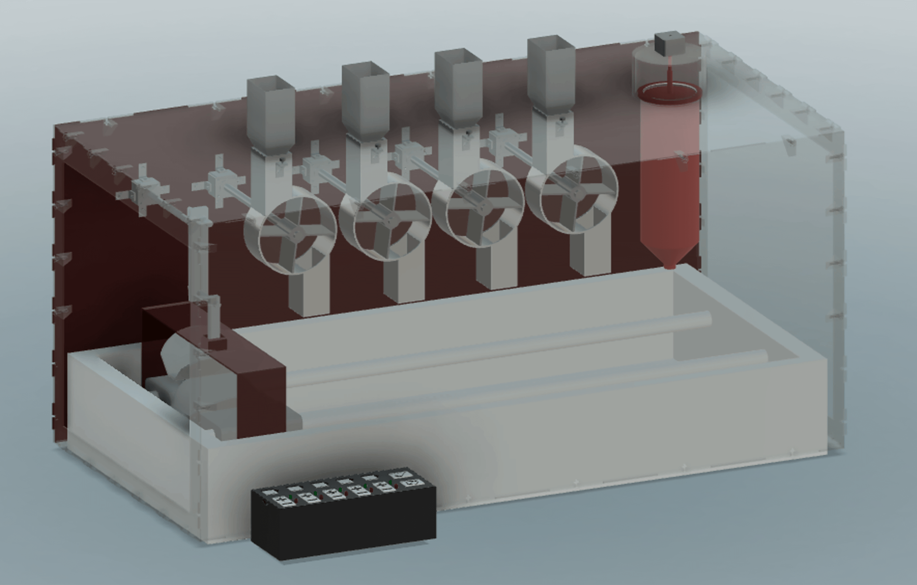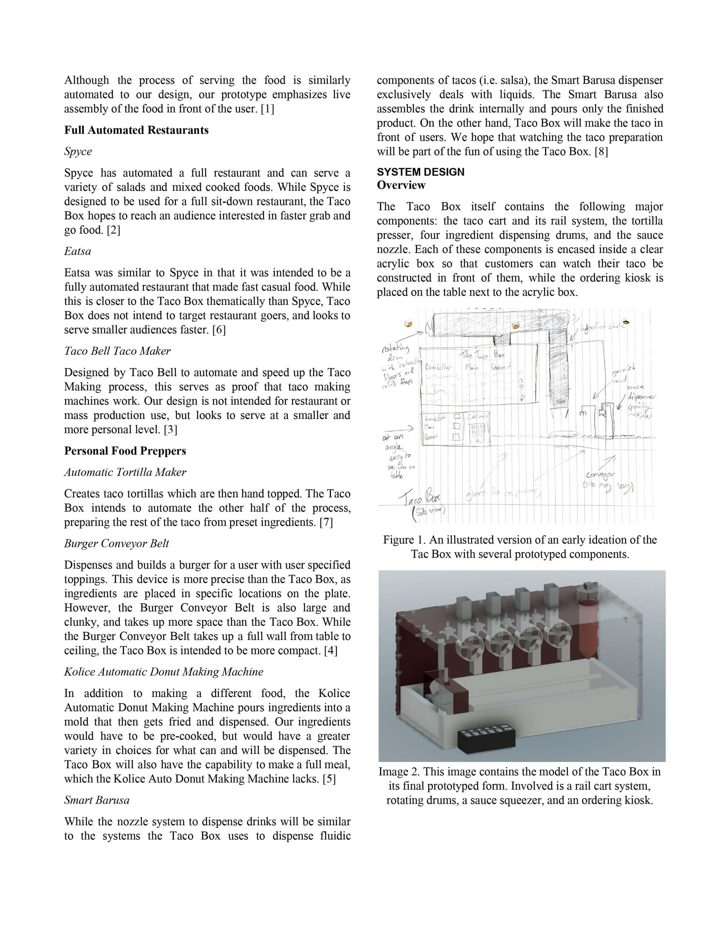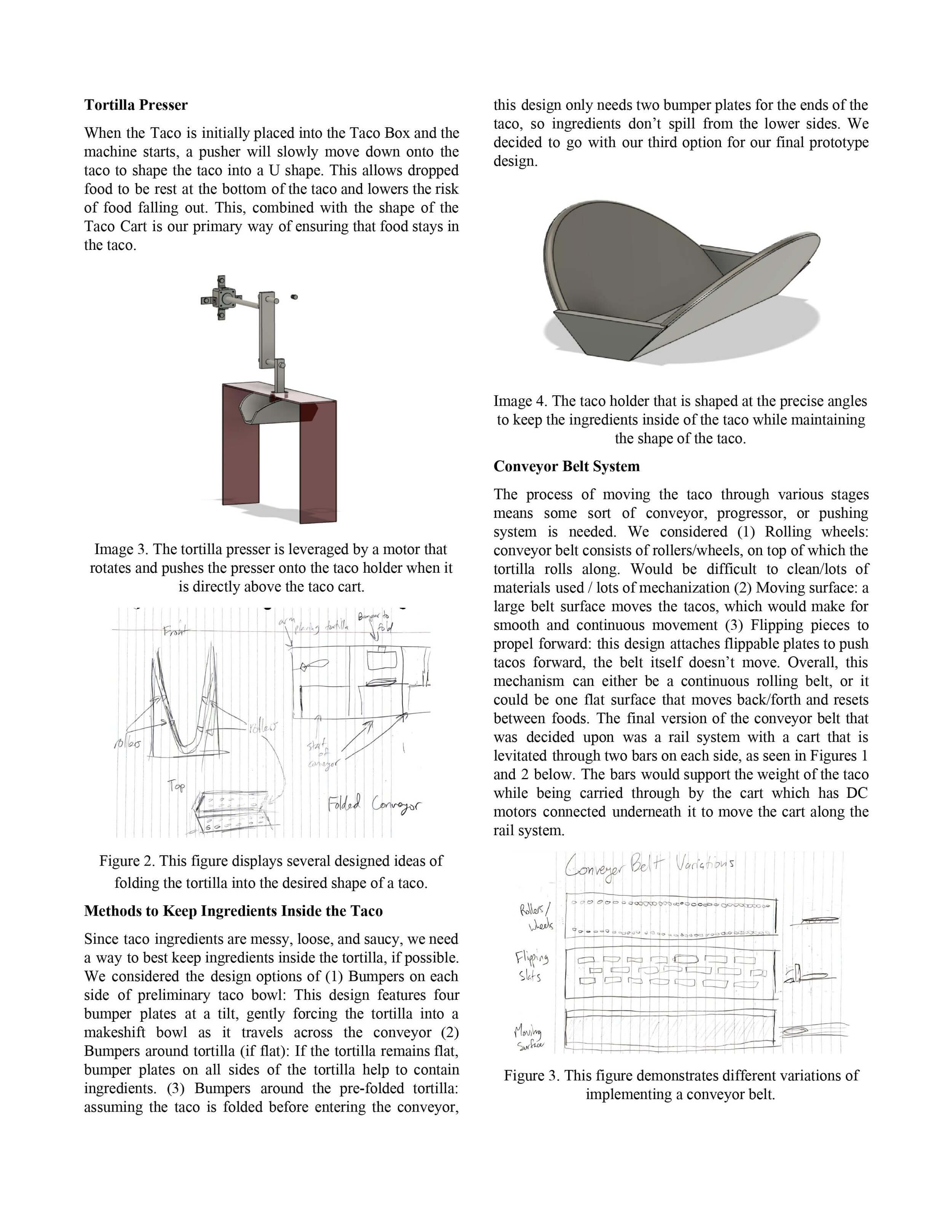 In the Spring 2020 semester, I signed up for a Rapid Prototyping class in which we were tasked with conceptualizing, designing, and building a prototype of a complex machine. We were taught to perform tasks involving circuitry, Arduino coding, laser cutting, 3D modeling, 3D printing, and basic carpentry. Due to COVID-19, the final project was edited to involve taking our previously created concept and transitioning it to a completely virtual space, removing the ability to incorporate certain aspects of our curriculum. We were tasked with 3D modeling our prototype in Fusion360, and preparing the files to be printed as if we were going to be able to print them and build our concept physically. My partners and I chose to make a proof of concept for a Taco Vending Machine, an automated taco maker that could eventually be further developed to be more self-sustaining. We created a project proposal and a parts list prior to the closing of campus, which both directly influenced our final prototype.